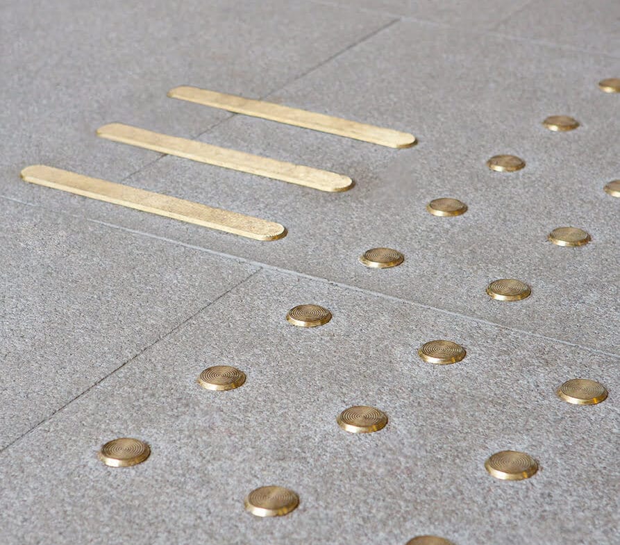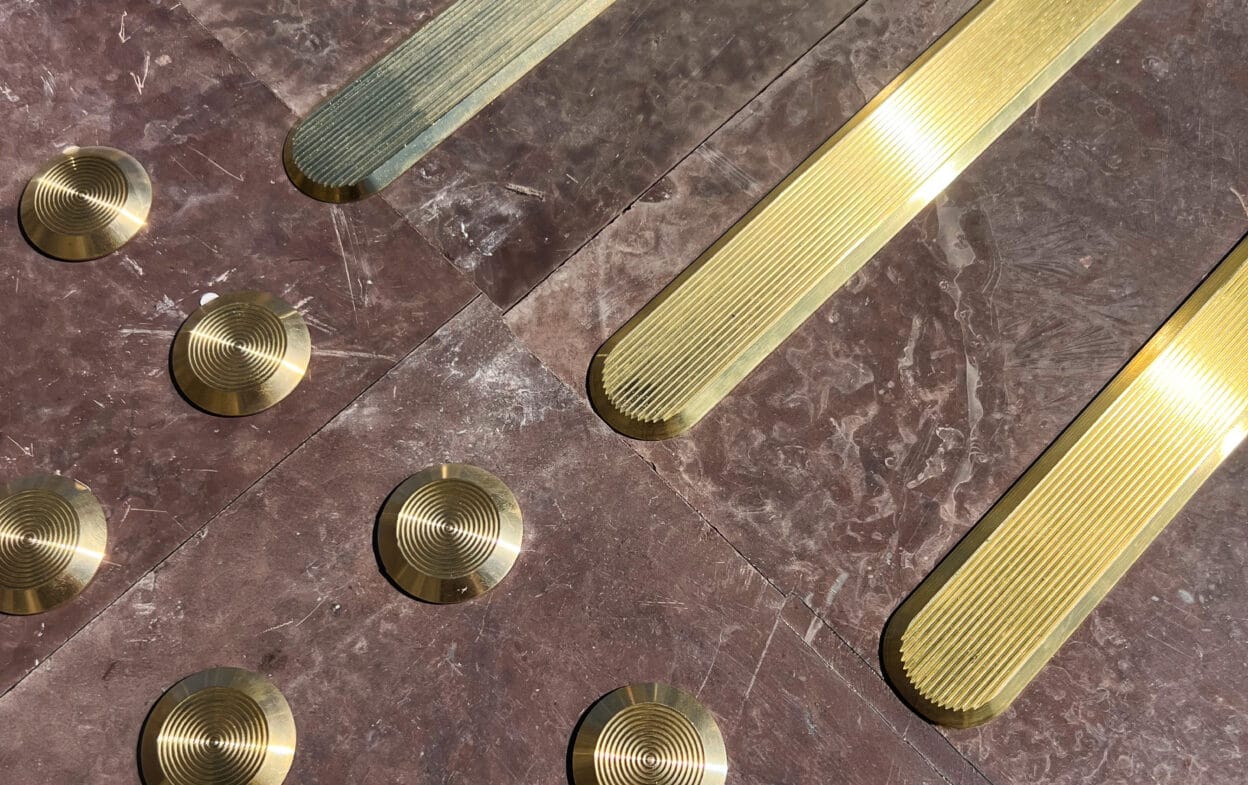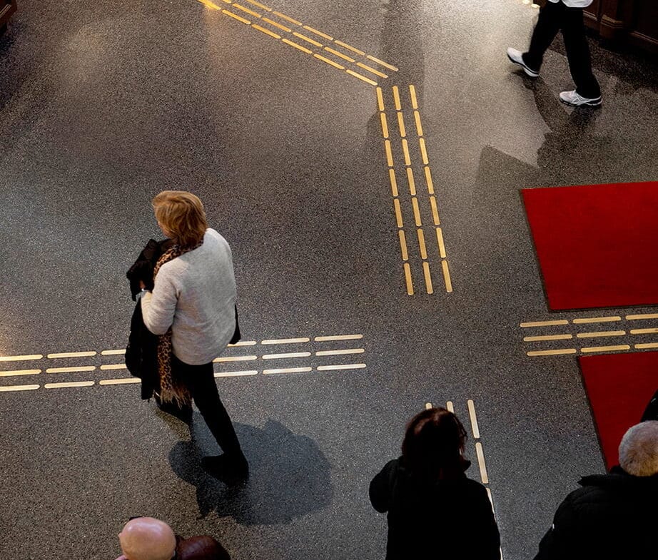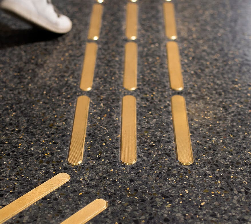 Taktila ledstråk i mässing.