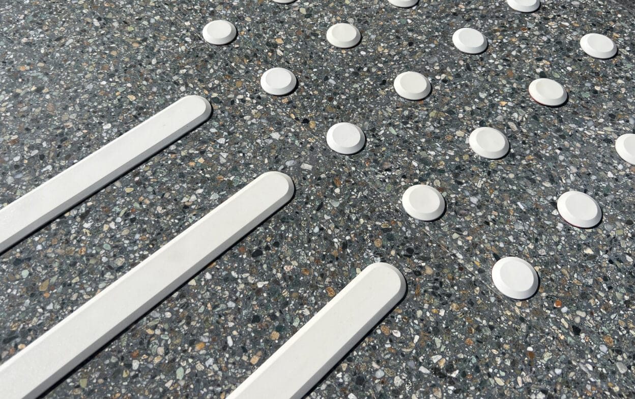 De taktila ledstråken ska också monteras med avvikande material och en ljushetskontrast på minst 0,4 NCS – antingen ljusare eller mörkare än omgivningen. Läs mer om alla regler och rekommendationer gällande taktila ledstråk här – eller ladda ner vår handbok nedan under Dokument.