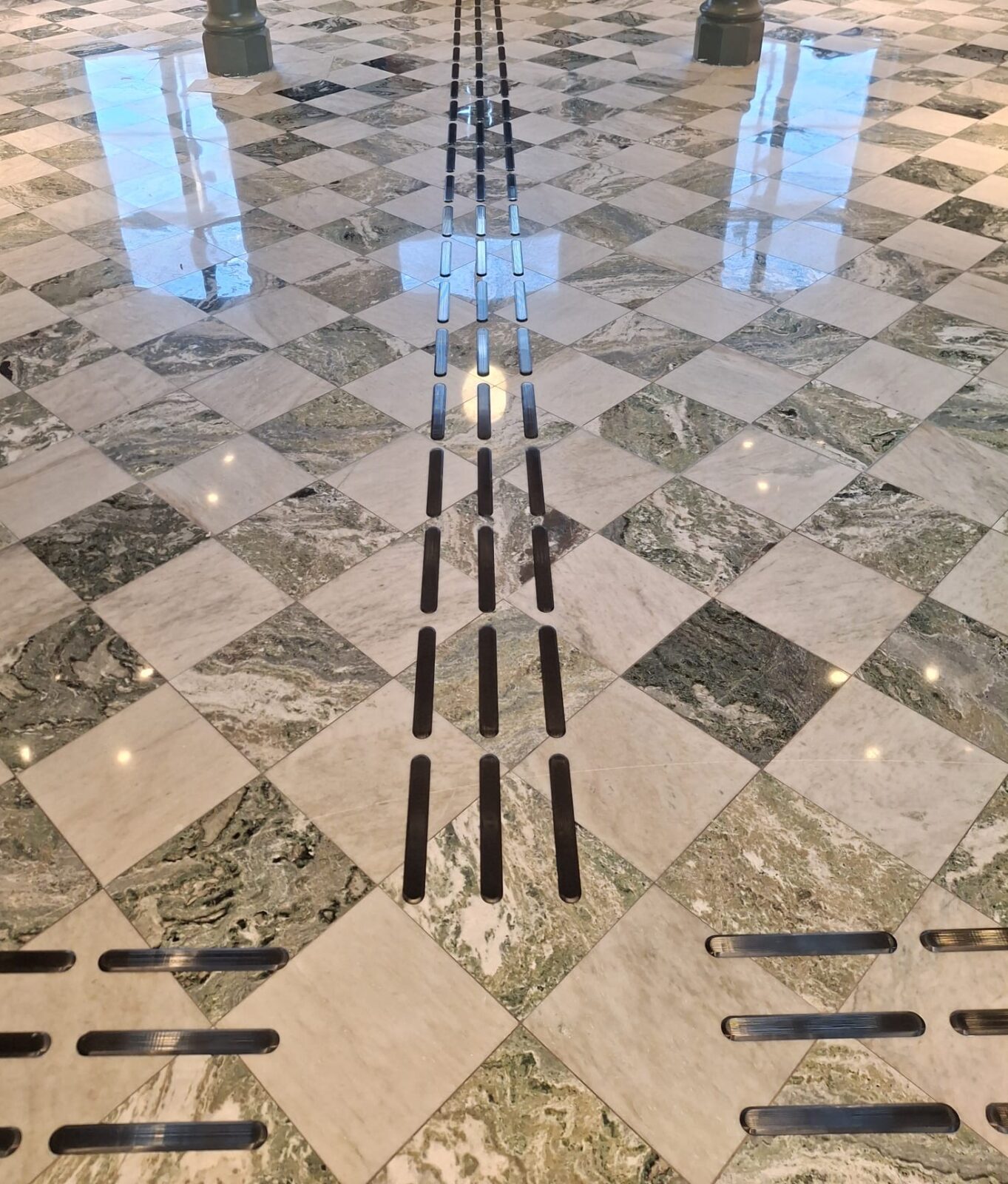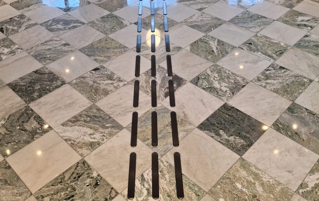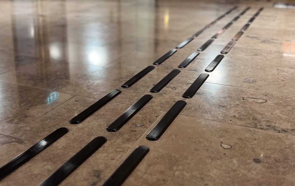 Taktila ledstråk med svart PVD-beläggning.