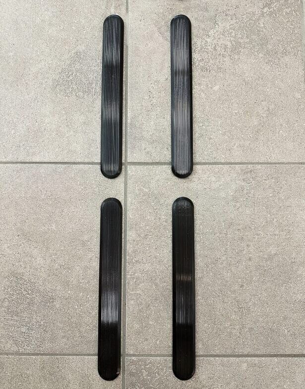 SVARTBÄCKEN har en vacker mörk färg med en glansig finish. Både ledstavar, stoppmarkeringar och kontrastmarkeringar finns i tre olika utföranden och kan monteras med 3M-tejp, stift eller monteringslim.