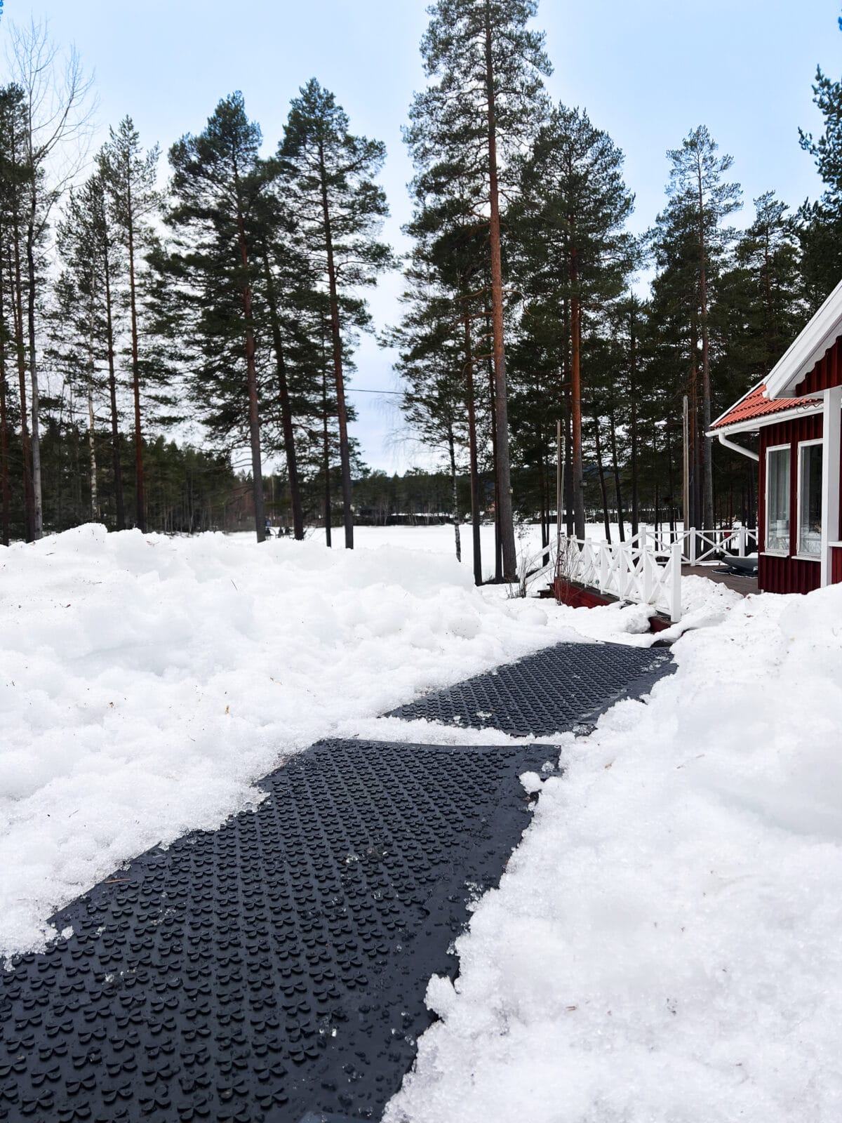 Elektriskt uppvärmda snösmältningsmattor – ett enkelt, miljövänligt och effektivt sätt att förhindra snö- och isbildning i trappor, entréer och gångvägar.